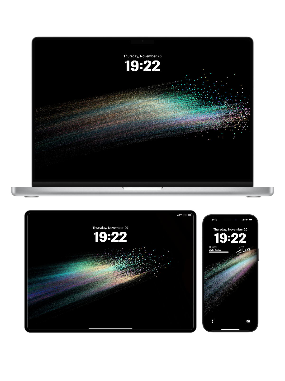 Let your screen shimmer with Stardust Streak! Colorful, glimmering particles flow like a cosmic trail across the dark backdrop, blending futuristic cool with dreamy vibes. Every time you glance at your phone, it’s a mini escape to a galaxy of light and wonder.